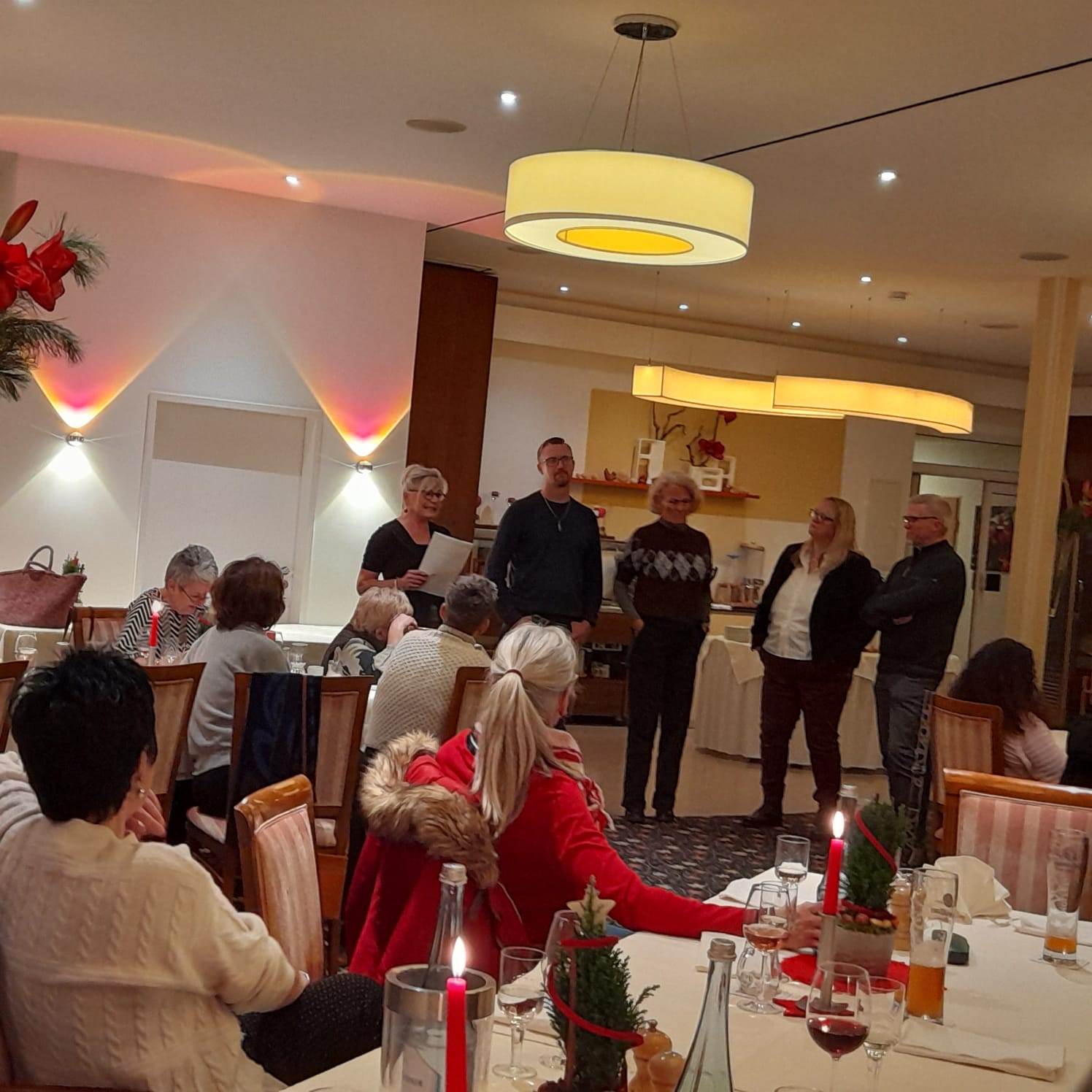 Schon wieder neigt sich das Jahr dem Ende zu. Die Weihnachtszeit befindet sich auf der Zielgeraden und die letzte Stunde der Wirbelsäulengymnastik und Rückenschule fällt zugunsten der Weihnachtsfeier aus. Auch in diesem Jahr trafen sich die Teilnehmer der letzten Sportstunde des Mittwochabends zahlreich zu einem gemütlichen Beisammensein. Nach einem guten Essen, verbunden mit leckeren Getränken, ist es eine liebgewonnene Tradition Übungsleiterin Rosi Kull dafür Danke zu sagen, dass sie ihrer Gruppe Woche für Woche dabei hilft, körperlich beweglich und fit zu bleiben.