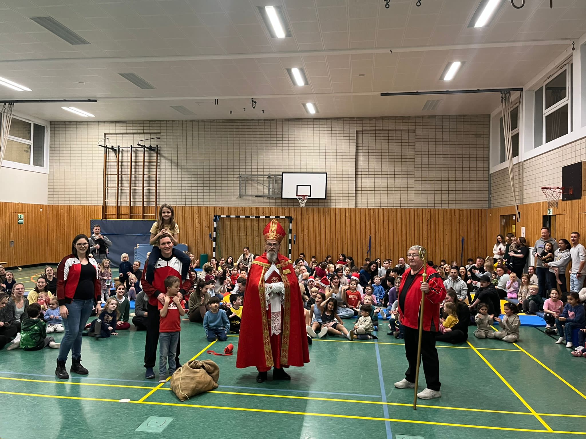 Bei so viel Begeisterung und Freude an der Bewegung verging die Zeit wie im Flug. Draußen war es schon dunkel, als es an der Hallentür klingelte. Der Weihnachtsmann besuchte die sportlichen Kinder, die den heiligen Mann mit großen Augen und textsicher mit einem Weihnachtslied begrüßten. Auch der Nikolaus war sichtlich angetan von der großen Kinderschar. „Bewegung ist wichtig und ihr macht das ganz toll. Der Nikolaus sieht alles und deshalb weiß er, mit welcher Begeisterung ihr an den wöchentlichen Sportstunden teilnehmt“ lobte er die Kinder. Der Nikolaus war nicht mit leeren Händen gekommen. Jedes Kind erhielt einen Ball, den es als Erinnerung an einen aufregenden und sportlichen Adventsnachmittag mit nach Hause nehmen konnte. Musikalisch wurde der heilige Mann verabschiedet, der versprach im nächsten Jahr wiederzukommen. Ein Ansporn für die Verantwortlichen des Turnvereins, auch dann wieder eine Veranstaltung auf die Beine zu stellen, bei der jedes Kind mit einem Lächeln nach Hause geht.